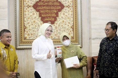 Di sambut langsung Danny Pomanto bersama Ketua TP PKK Kota Makassar Indira Jusuf Ismail beserta beberapa pejabat lingkup Pemkot Makassar, tampak Wali Kota Palu bersama istrinya Diah Puspita saling bertegur sapa. Kemudian, Wawali Palu Reny datang menyusul.