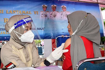 Selain kegiatan olahraga bersama dan ziarah ke TMP Panaikang, Lantamal VI Makassar juga menggelar baksos dan vaksinasi dalam rangka Hari Armada RI.