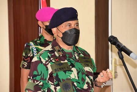 MAKASSAR, NEWSURBAN.ID — Komandan Pangkalan Utama TNI AL VI (Danlantamal VI Makassar) Laksamana Pertama TNI Dr. Benny Sukandari, S.E., M.M., CHRMP memimpin upacara serah terima jabatan (Sertijab) Kepala Fasilitas dan Perbaikan (Kafasharkan) Makassar dari Kolonel Laut (T) Edi Cahyono, S.T.,M.M. Kepada Kolonel Laut (T) Indra Bienbusaju Leppang, M. Tr. Hanla, M.M. di Ruang Transit Kajaolalido Mako Lantamal VI, Senin (13/12/2021).