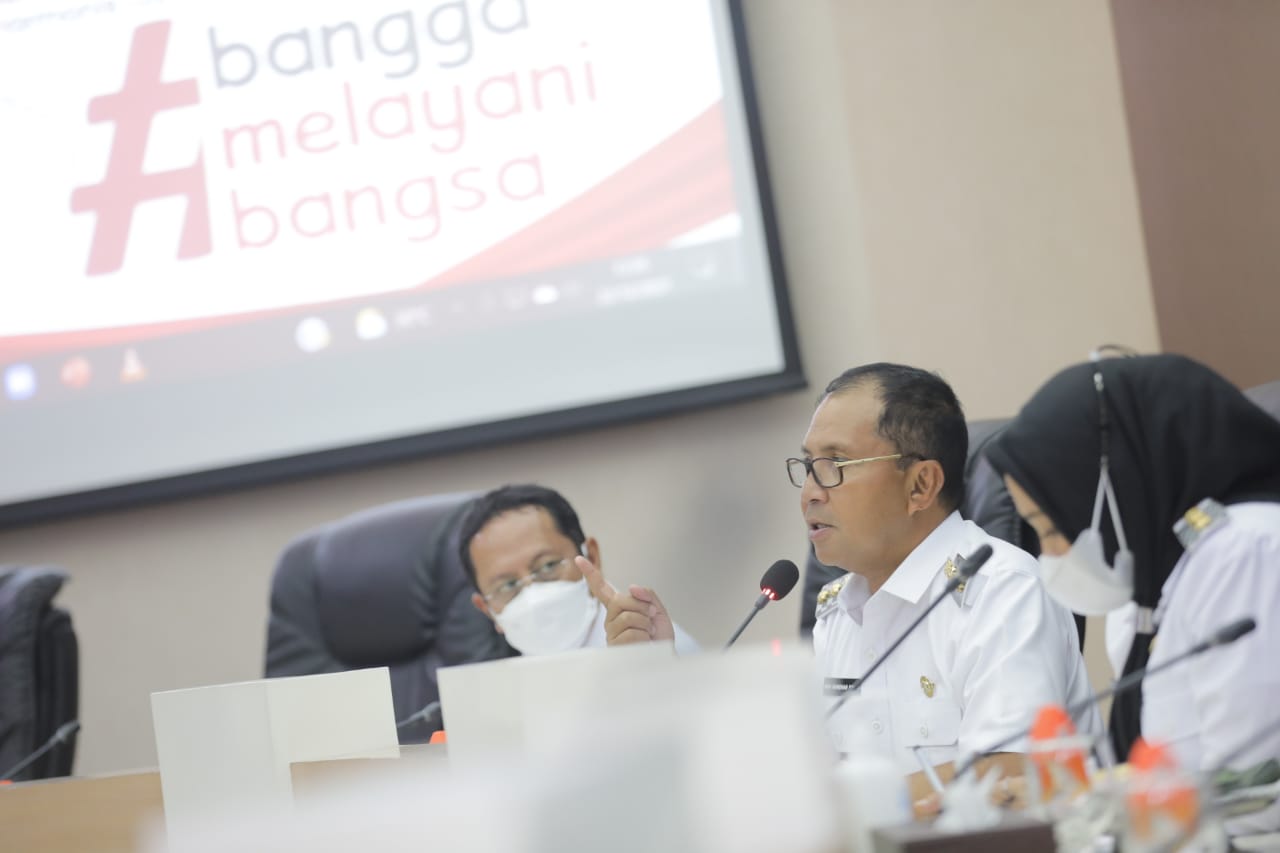 MAKASSAR, NEWSURBAN.ID — Wali Kota Moh. Ramdhan Pomanto (Danny Pomanto) bersama Wakil Wali Kota Makassar Fatmawati Rusdi melakukan Rapat Koordinasi (Rakor), di Ruang Sipakatau, Kantor Balaikota Makassar, Rabu (22/12/21).