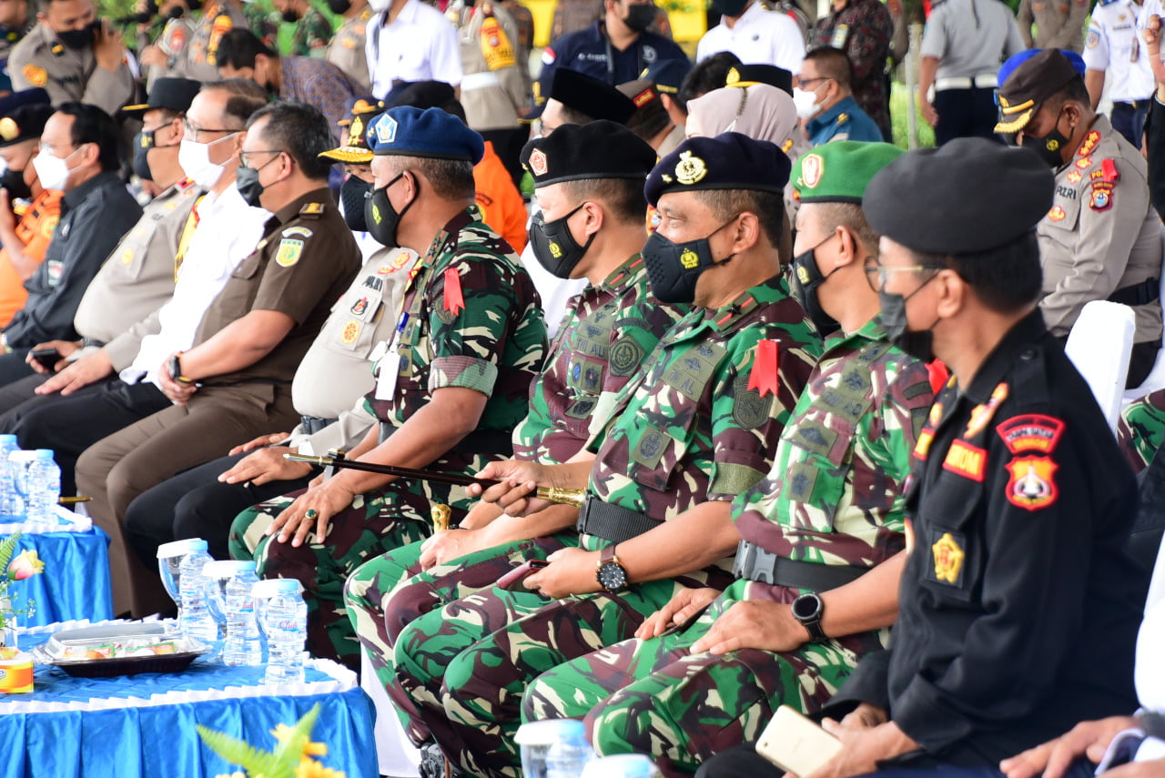 Komandan Pangkalan Utama TNI AL (Danlantamal ) VI Laksamana Pertama TNI Dr. Benny Sukandari, S.E., M.M., CHRMP menghadiri Apel gelar pasukan Ops Lilin 2021. Beserta 1 Peleton pasukan Pelaut dan Marinir.