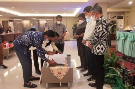 Di akhir kegiatan, Asosiasi Pemerintah Desa Seluruh Indonesia (APDESI) Kabupaten Bone bersama Bank Sulselbar Cabang Utama Bone. Melakukan penandatanganan MUO terkait Inklusi Keuangan Pemerintahan Desa dengan Produk dan Jasa Perbankan. (fan)