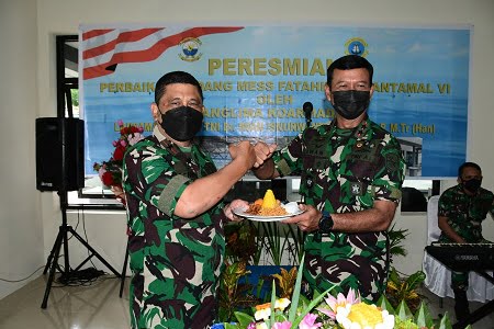 MAKASSAR, NEWSURBAN.ID — Panglima Komando Armada II (Pangkoarmada II) Laksamana Muda TNI Dr. Iwan Isnurwanto, S.H., M.A.P., M.Tr (Han) di dampingi Komandan Lantamal VI Makassar Laksamana Pertama TNI Dr. Benny Sukandari, S.E M.M, CHRMP meresmikan renovasi Mess perwira Fatahillah Lantamal VI bertempat di Jl. Gunung Latimojong No.143 Makassar, Kamis (30/12/2021).