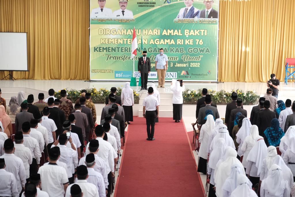 Wabup Gowa yang membacakan sambutan seragam Menteri Agama RI, Yaqut Cholil Qoumas mengatakan momentum HAB Ke-76 ini untuk terus berinovasi mewujudkan pelayanan Kementerian Agama kepada masyarakat yang lebih baik.