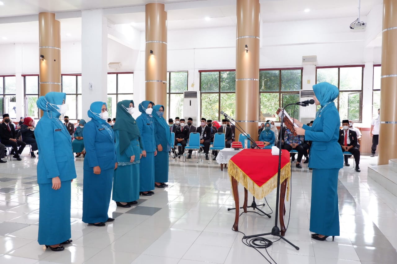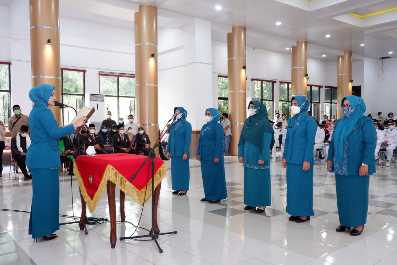 GOWA, NEWSURBAN.ID — Ketua Tim Penggerak (TP) PKK Kabupaten Gowa, Priska Paramita Adnan melantik 5 (lima) orang Ketua TP PKK Kecamatan yang berlangsung di Baruga Karaeng Galesong, Kantor Bupati Gowa, Rabu (5/1).