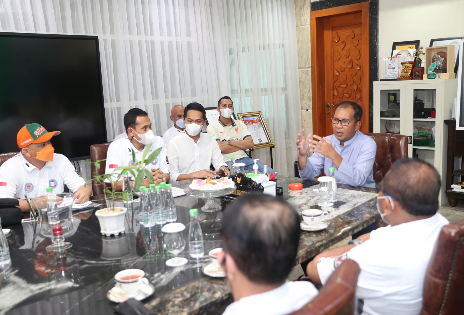 MAKASSAR, NEWSURBAN.ID — Wali Kota Makassar Moh. Ramdhan Pomanto (Danny Pomanto) menerima kunjungan 36 ketua ketua cabang olahraga, di bawah naungan Komite Olahraga Nasional Indonesia (KONI) Makassar, Jumat (7/1/2022).