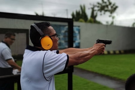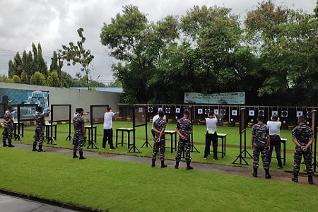 Pada latihan menembak kali ini, para peserta latihan menggunakan senjata pistol berjenis Sig Sauer kaliber 9 mm buatan Jerman dan senjata pistol G2 kaliber 9 mm buatan Pindad dengan posisi menembak presisi dan posisi menembak reaksi.