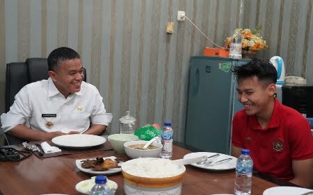 PALU, NEWSURBAN.ID — Wali Kota Palu, H. Hadianto Rasyid, menyambut baik atas kedatangan Witan Sulaiman salah satu pemain Timnas Indonesia asal Kota Palu, di ruang kerjannya, Jumat (07/01/22).