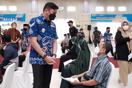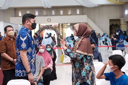 GOWA, NEWSURBAN.ID — Pemerintah Kabupaten (Pemkab) Gowa terus melakukan peningkatan cakupan vaksinasi. Salah satunya bekerjasama dengan berbagai pihak seperti PT. Trakindo Utama Cabang Makassar, TNI Bais, dan Loket di Gedung Haji Bate Sungguminasa, Jum’at (7/1).