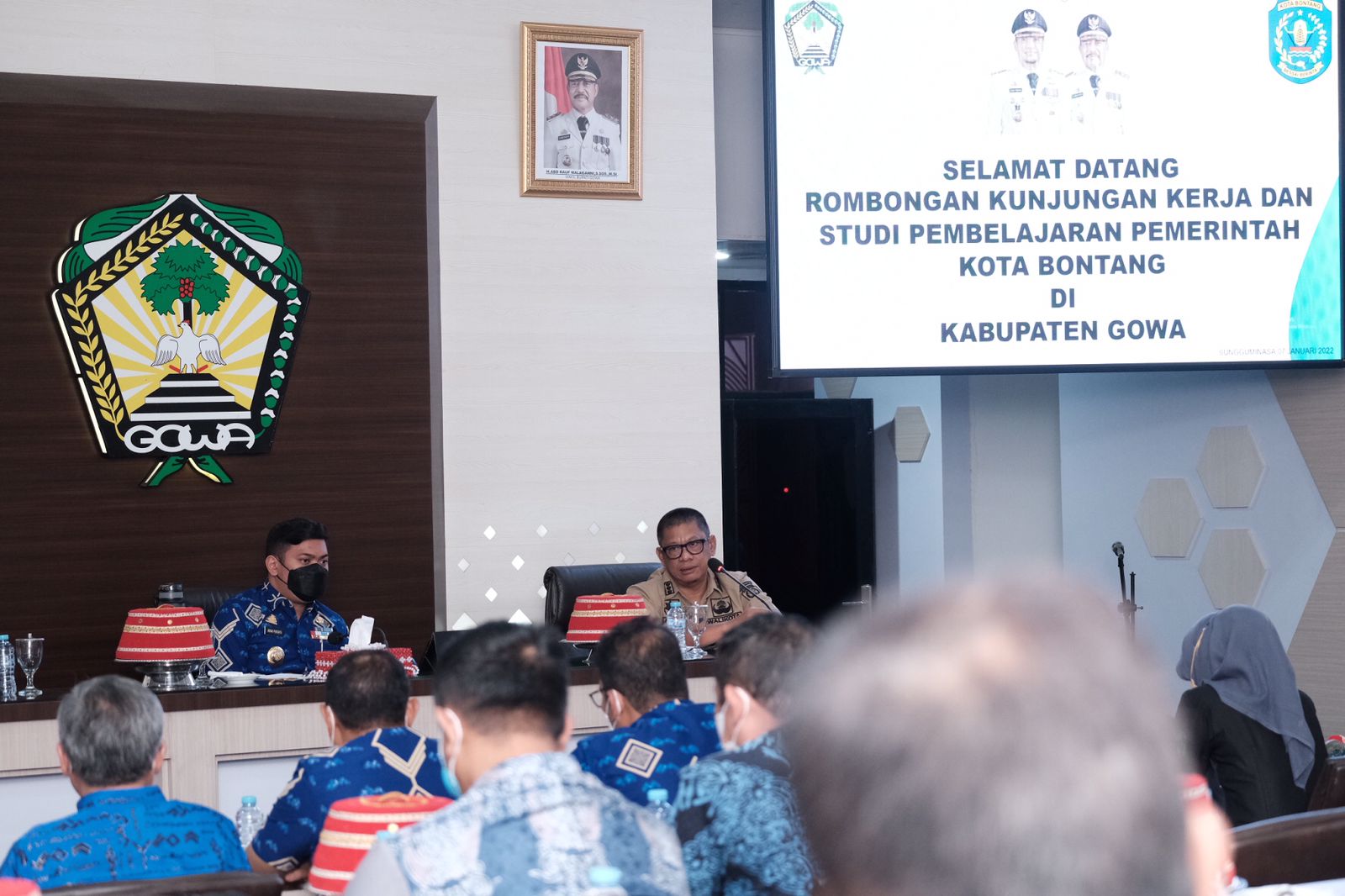 GOWA, NEWSURBAN.ID — Pemerintah Kota Bontang, Provinsi Kalimantan Timur melakukan Kunjungan Kerja di Kabupaten Gowa. Kunjungan diterima langsung Bupati Gowa, Adnan Purichta Ichsan di Baruga Karaeng Pattingalloang, Kantor Bupati Gowa, Jum’at (07/01/22).