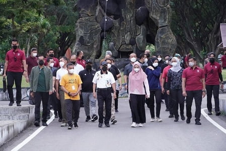 Terlihat Wali Kota Hadi yang bersama Wakil Presiden RI dan rombongan berjalan santai di sekitaran lokasi Taipa Beach.