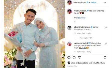 Unggahan Witan pun sontak mengundang reaksi. Sejumlah rekan setim Witan di Timnas Indonesia turut mengucapkan selamat atas lancarnya proses lamaran tersebut.