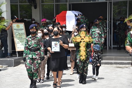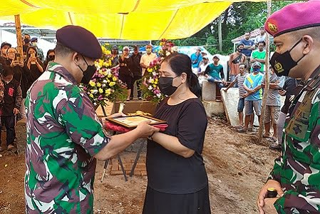 Pemakaman militer-ditandai dengan upacara pemberangkatan jenasah. Di rumah duka yayasan Budi Luhur Makassar dan pemakaman jenazah di TPU Kristen Pannara Makassar, Selasa (11/01/2022).