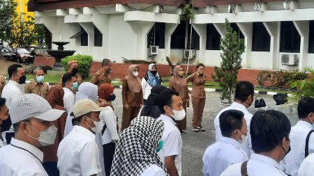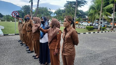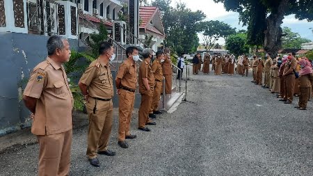 Hadir pada apel pagi tersebut, para asisten, staf ahli, kabag, fungsional ahli madya, ASN dan para PHL.
