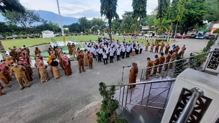 Wakil Wali Kota Palu dr. Reny A Lamadjido, Sp, PK, M.Kes menyampaikan itu, saat memimpin apel pagi di lingkungan Sekretariat Daerah Kota Palu pada Selasa (11/1/2022) pukul 07.15 Wita.