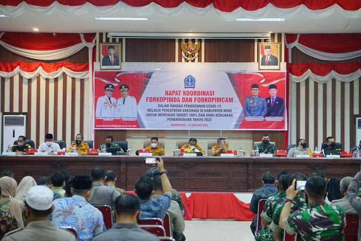 BONE, NEWSURBAN.ID — Bupati Bone Andi Fahsar M. Padjalangi, memimpin rapat koordinasi dalam rangka penanganan Covid 19 melalui percepatan vaksinasi untuk memenuhi target 100 persen. Kebijakan itu melalui arahan pemerintah di tahun 2022.