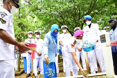 Tampak hadir dalam ziarah rombongan para Asisten Danlantamal VI, Kafasharkan Makassar, Kakuwil Lantamal VI, Dansatrol Lantamal VI, Dansatlinlamil 3 Kolinlamil, Para Kadis/Kasatker Lantamal VI, Kaladokgi TNI AL Yos Sudarso, Komandan KRI Badau-841, Danyonmarhanlan VI serta Dansekesal MKS