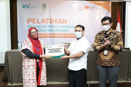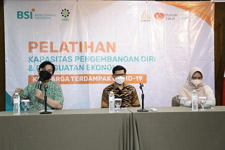 JAKARTA, NEWSURBAN.ID — Yayasan Bangun Sejahtera Mitra Umat (Yayasan BSMU) bersama PT. Bank Syariah Indonesia Tbk (BSI) melalui BSMU Care melakukan program pelatihan dan penguatan ekonomi keluarga terdampak COVID-19. Pelatihan ini bertujuan meningkatkan kualitas SDM penerima manfaat dalam hal pengembangan usaha.