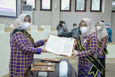 MAKASSAR, NEWSURBAN.ID — Ketua Tim Penggerak PKK Kota Makassar, Indira Jusuf Ismail, yang juga selaku Bunda Pendidikan Anak Usia Dini (PAUD) Kota Makassar. melantik dan mengukuhkan Delapan Ketua TP PKK Kecamatan dan juga Bunda Paud kecamatan, di ruang pola Sipakalebbi Lantai 2, Balaikota, Selasa (18/01/2022).