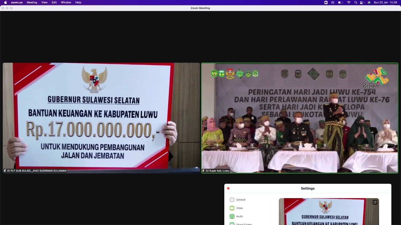 Hal itu disampaikan Andi Sudirman saat menghadiri secara virtual acara 754 tahun Kabupaten Luwu, Hari Perlawanan Rakyat Luwu ke-76 dan 16 Tahun Belopa sebagai Ibukota Kabupaten Luwu, Minggu 23 Januari 2022.