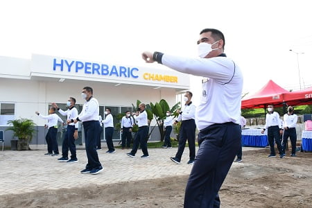 “ Awal di adakannya hyperbaric chamber ini adalah untuk pengobatan utama mengatasi gangguan kesehatan dan penyakit akibat penyelaman yaitu dengan cara TOHB. Sehingga keberadaan hyperbaric chamber Rumkital Jala Ammari Lantamal VI sangat penting. Semoga fasilitasi kesehatan ini bisa di manfaatkan dengan sebaik-baiknya,” ujar Danlantamal VI.