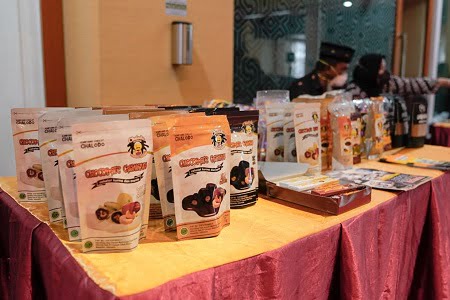 UMKM Chalodo dari Luwu Utara dengan produk permen coklat. Owner Chalodo, Baharuddin Iskandar menyampaikan, antusiasnya mengikuti pameran UMKM yang dihadiri oleh Wapres.