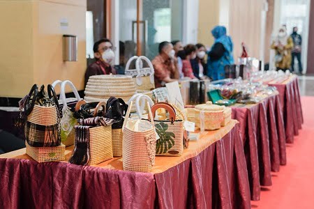 Pada pameran itu, UMKM dari Bulukumba bernama kerajinan Atap Konjo turut ikut andil. Adapun produk yang tampil berupa produk peralatan rumah tangga, tas yang berbahan daun lontar.