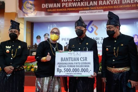 Pada kesempatan ini, selain bantuan keuangan, Plt. Gubernur juga menyerahkan Bantuan dana Tanggung Jawab Sosial dan Lingkungan (CSR) dari Bank Sulselbar kepada Bupati Bulukumba untuk anggaran Pintu Gerbang Kabupaten.