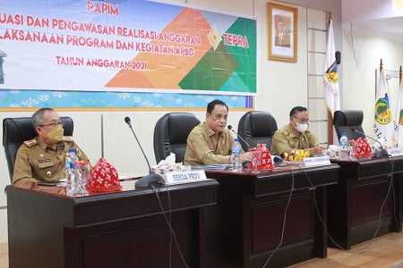 Kepala Biro Adm Pembangunan Drs. Arfan , M,Si. Selaku Sekretaris TEPRA, pada rapat itu, melaporkan realisasi APBD TA. 2021 sebesar Rp. 4.311.742.882.868, dari total APBD Sebesar Rp. 4.669.877.792.403 dan Sisa Anggaran yang tidak terealisasi sebesar Rp. 358.134.909.535 atau 7,67%.