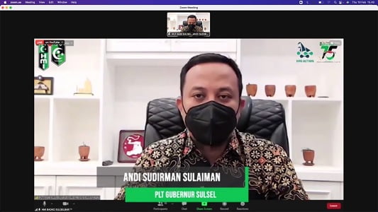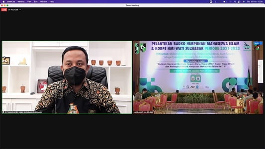 MAKASSAR, NEWSURBAN.ID — Pelaksana Tugas Gubernur Sulsel, Andi Sudirman Sulaiman menghadiri Pelantikan Badko Himpunan Mahasiswa Islam Sulselbar (Badko HMI Sulselbar) dan Korps HMI-Wati Sulselbar Periode 2021-2023 secara virtual, Kamis 10 Februari 2022.