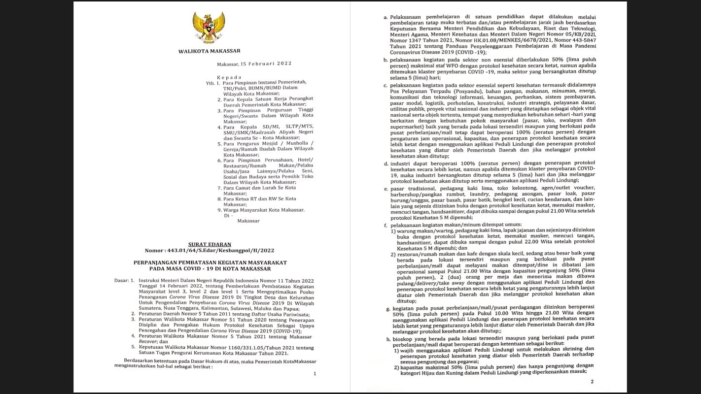 MAKASSAR, NEWSURBAN.ID — Seiring kenaikan kasus Covid-19, pemerintah pusat menaikkan status Pemberlakuan Pembatasan Kegiatan Masyarakat Kota Makassar dari level 2 ke PPKM Level 3. Status Penerapan Pembatasan Kegiatan Masyarakat Level 3 itu berlaku hingga 28 Februari mendatang.