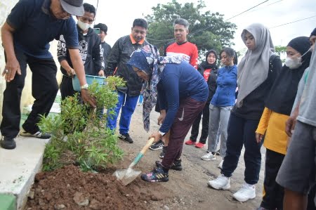 Selain senam, Ketua Diah Puspita yang di dampingi Ketua RW 007 Kelurahan Lasoani, Arfan yang juga selaku Kepala Bappeda Kota Palu melaksanakan penanaman pohon di wilayah setempat.