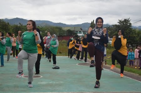 PALU, NEWSURBAN.ID — Ketua Tim Penggerak Pemberdayaan Kesejahteraan Keluarga (TP-PKK) Kota Palu, Diah Puspita, menghadiri Senam Bersama masyarakat RW. 007 Kelurahan Lasoani, Minggu (20/2) di lapangan BTN Griya Lasoani Indah, Kota Palu.