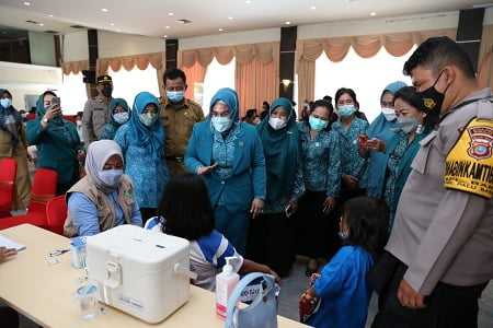 Di tempat terpisah, Ketua Tim Penggerak PKK Provinsi Sulawesi Tengah Dr. Hj. Vera Rompas Mastura, S.Sos, M.Si bersama sejumlah pengurus PKK juga berkesempatan melakukan pemantauan pelaksanaan vaksinasi massal yang pelaksanaannya di salah satu Hotel Palu. (bap/ysf)