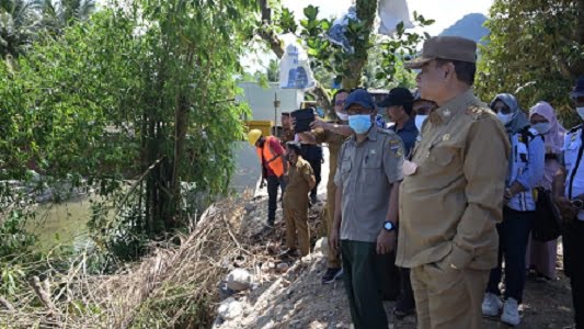 Dari pelabuhan Feri, Wakil Gubernur bersama Bupati Toli-Toli Amran Yahya meninjau Penanggulangan Bencana Banjir Sungai Tuweley yang di lakukan BPBD Provinsi.