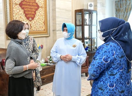 MAKASSAR, NEWSURBAN.ID — Ketua Tim Penggerak PKK Kota Makassar, Indira Jusuf Ismail, yang juga selaku Ketua Dekranasda Kota Makassar membahas pengembangan UMKM bersama Persatuan Istri Pegawai Bank Indonesia (PIPEBI), di kediaman Wali Kota Makassar, Kamis (17/03/2021).