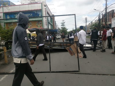 Balih dan reklame itu, berlokasi di 2 titik jalan Protokol Kota Makassar. Yakni, di persimpangan jalan Adiyaksa-Pengayoman.
