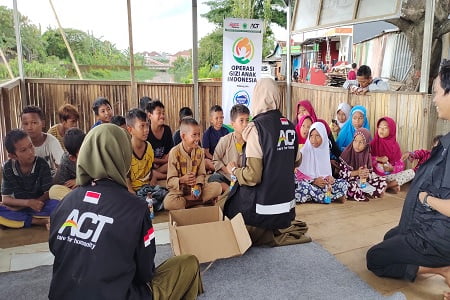 Anak-anak di Kampung Pandang Jalan Adyaksa, Kelurahan Pandang, Kecamatan Panakkukang, Kota Makassar, Sulawesi Selatan, menjadi sasaran Aksi Operasi Gizi Anak Indonesia dari ACT.