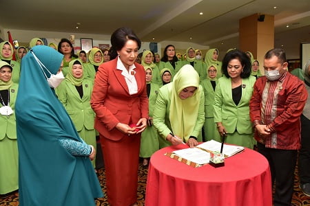 Tercatat 94 pengurus di kukuhkan oleh Ketua Umum Kongres Wanita Indonesia (Kowani), Giwo Rubianto Wiyogo.