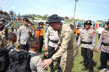 GOWA, NEWSURBAN.ID — Bupati Gowa, Adnan Purichta Ichsan menghadiri Upacara Pembinaan Tradisi Pembaretan Remaja dan Penutupan Peningkatan Kemampuan Fungsi Teknis Samapta Terhadap Bintara Remaja Ditsamapta Polda Sulsel di Lingkungan Batu Lapisi Dalam, Kel. Malino, Kec. Tinggimoncong, Kab. Gowa, Kamis (9/6/2022).