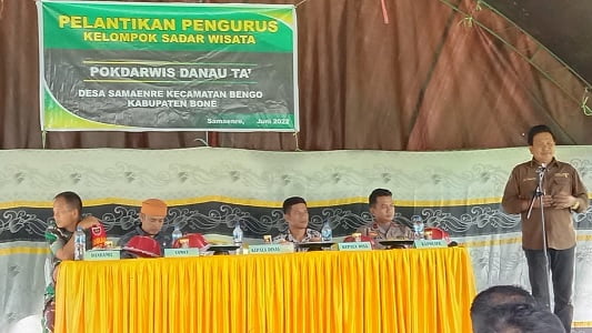 BONE, NEWSURBAN.ID – Incar Bone destinasi terbaik sektor pariwisata, Kepala Dinas Pariwisata Kabupaten Bone Andi Promal Pawi mengukuhkan 35 pengurus Kelompok Sadar Wisata Danau TA priode 2022 – 2027, Sabtu (11/6/2022). Mereka,diharapkan bisa membantu pemerintah daerah mewujudkan Bone destinasi wisata terbaik di Sulsel dan Indonesia.