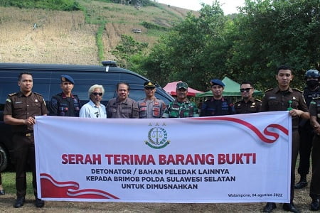 Ratusan detonator amonium nitrate di musnahkan oleh Detasemen Gegana Brimob Polda Sulsel. Brang bukti bahan peledak itu, telah di nyatakan inkrah berkekuatan hukum dari Kejaksaan Negeri Watampone.