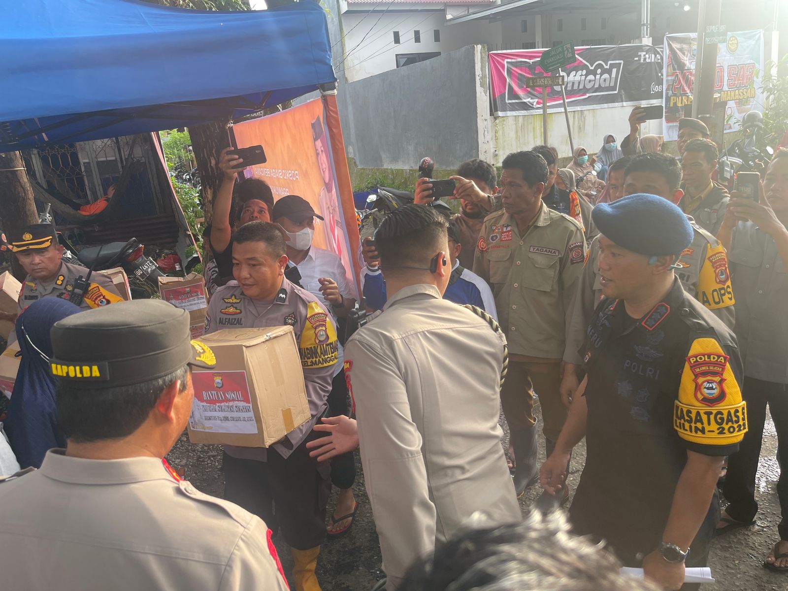 Dalam peninjauan itu, Kapolrestabes Makassar dan Kapolda Sulsel memberikan bantuan langsung kepada masyarakat sekitar yang terkena dampak Banjir. (tim)