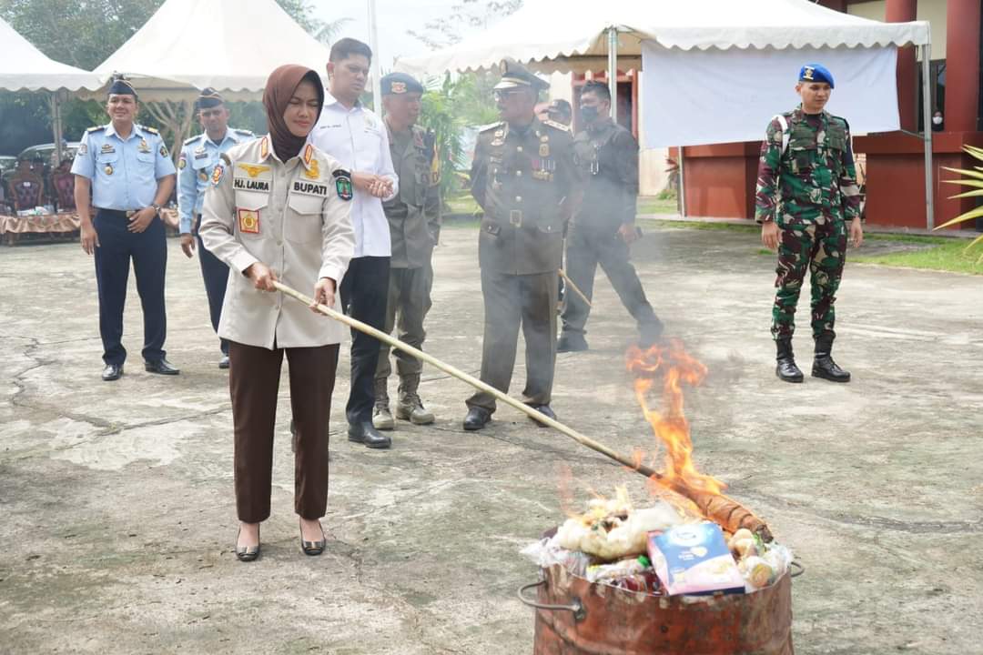 NUNUKAN, NEWSURBAN.ID — Bupati Nunukan Hj. Asmin Laura Hafid menghadiri acara Purna Tugas Kepala Satuan Polisi Pamong Praja Kab. Nunukan (Kasatpol PP Nunukan) Drs. Abdul Kadir. Pelepasan Kasatpol PP Nunukan, sekaligus pemusnahan barang bukti makanan dan minuman yang telah kedaluarsa di Markas Komando Satuan Polisi Pamong Praja Nunukan, Selasa (3/1/2023).