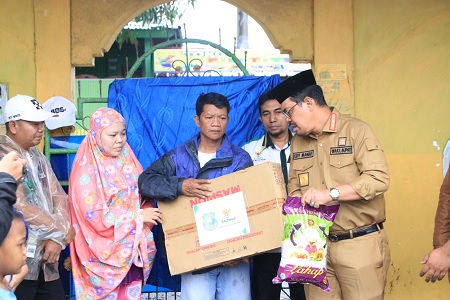 Pada kesempatan tersebut, Wakil Bupati menyerahkan bantuan dari Badan Amil Zakat Nasional kepada para korban terdampak kebakaran.