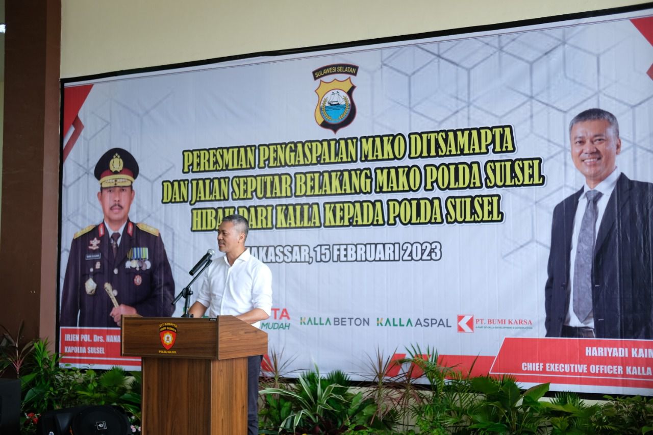 “Kami mengucapkan apresiasi dan terima kasih atas bantuan CSR KALLA untuk kawasan Mako Polda Sulawesi Selatan dengan luasan kurang lebih 2 kilometer. Kami berharap ini dapat meningkatkan pelayanan kami kepada masyarakat dengan mobilitas yang lebih baik,” ujar, Irjen. Pol. Drs. Nana Sudjana, M.M selaku Kapolda Sulawesi Selatan.
