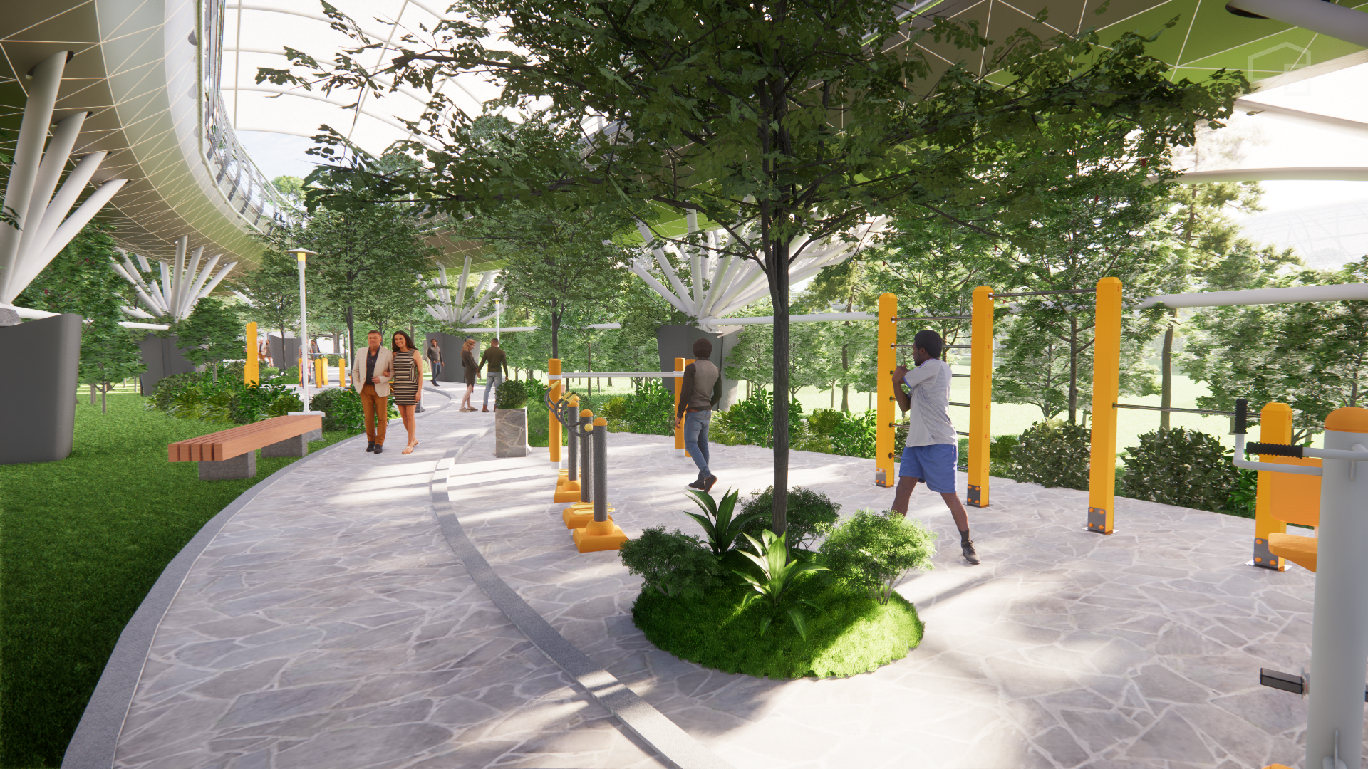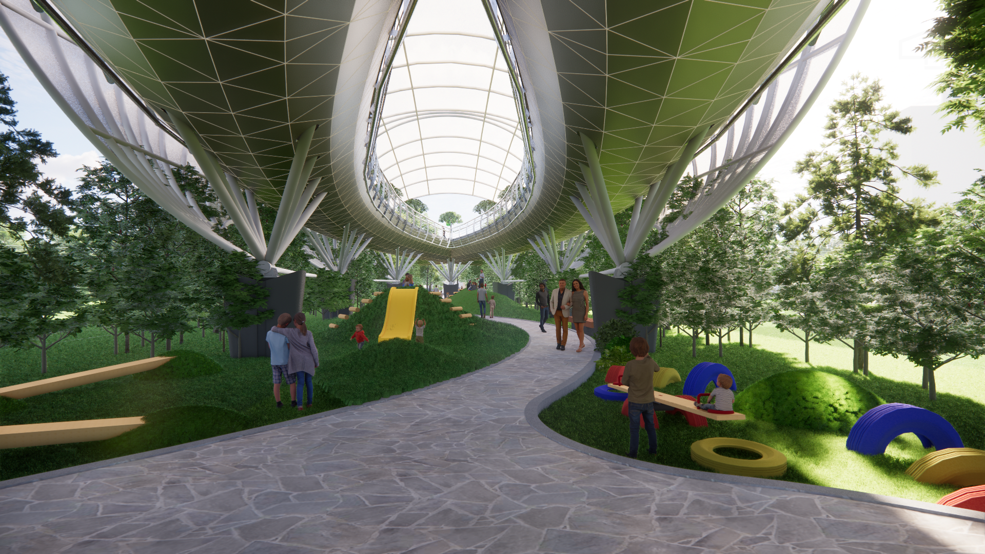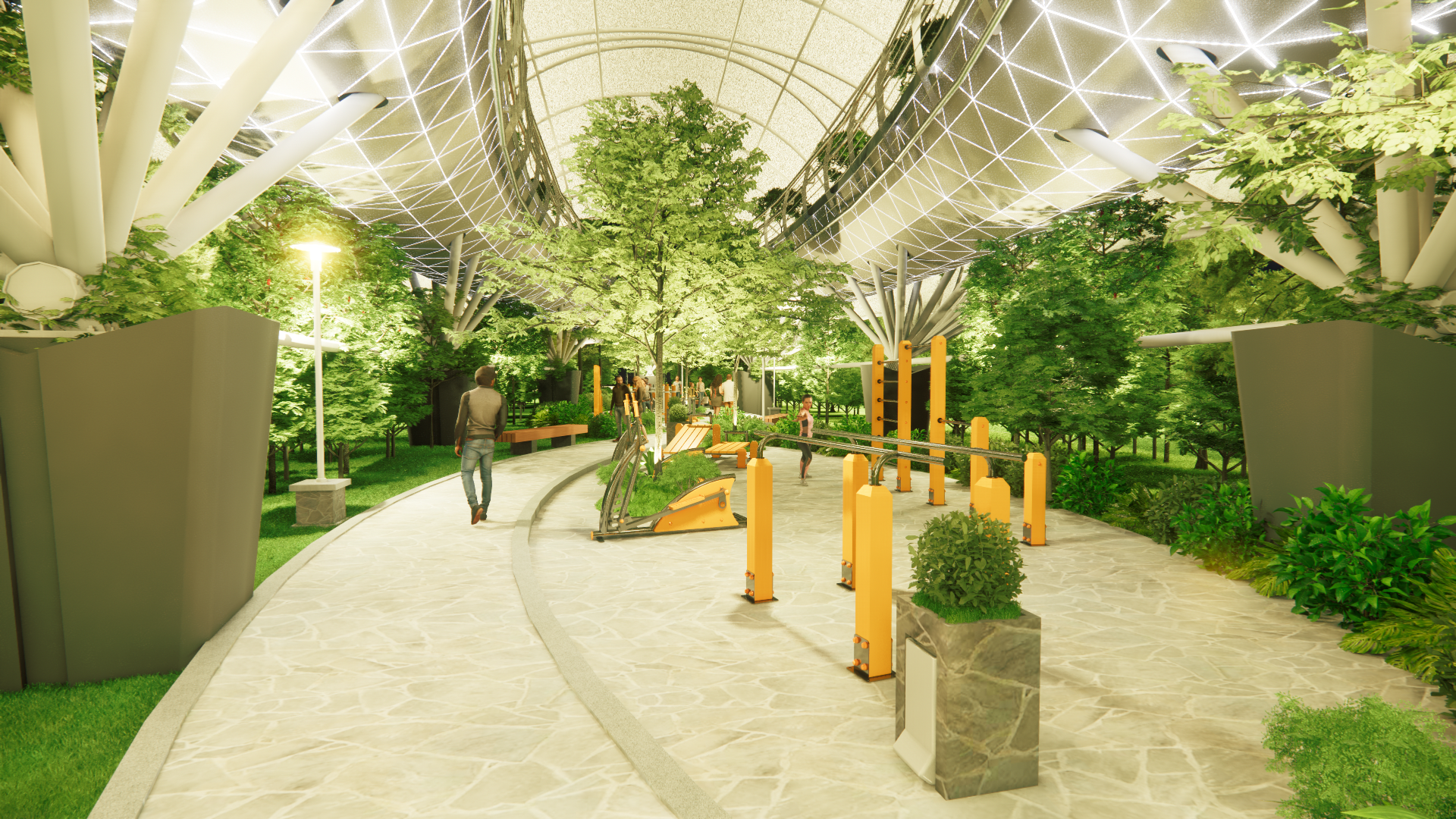 Desainnya berbentuk angka 8 di sertai konsep elevated atau layang. Dengan begitu, saat joging masyarakat akan menikmati Kota Makassar dari ketinggian.