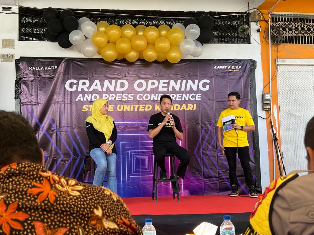 Kalla Kars selaku authorized dealer United E-Motor pun langsung melakukan Grand Opening Store United E-Motor Kendari yang berlokasi di Jl. Jend. Ahmad Yani No. 191, Kelurahan Anaiwoi, Kecamatan Kadia, Kamis (20/7/2023). Acara ini dihadiri oleh Chief Finance Officer (CFO) Kalla Automotive, Transport & Logistics, Sjaiful Kasim; Chief Operation Officer (COO) Kalla Kars, Fery Irawan dan Kepala Dinas Perdagangan, Koperasi dan UKM Kota Kendari, Alda Kesutan Lapae.
