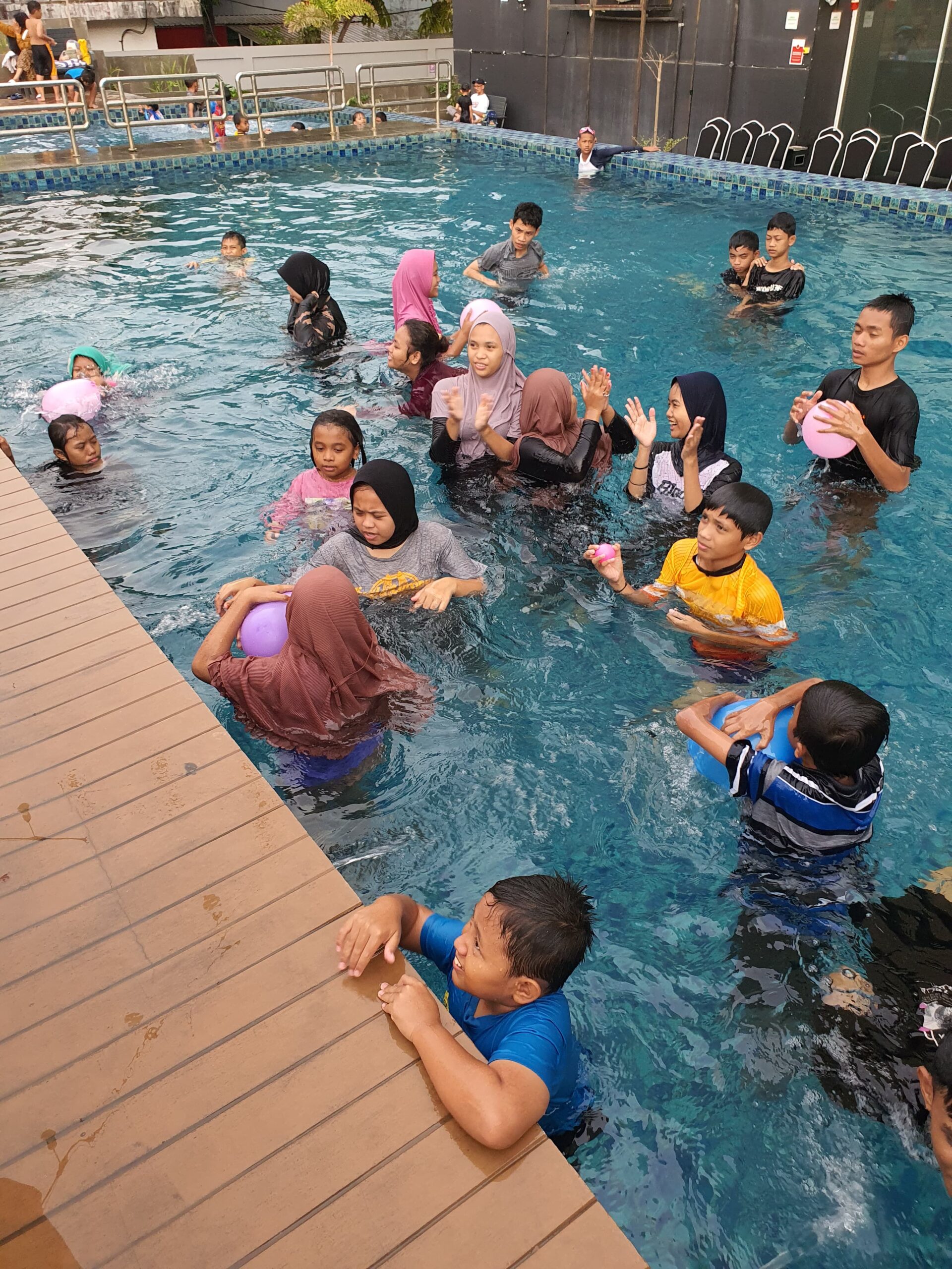 Kegiatan CSR kali ini tidak hanya sekadar menyediakan fasilitas rekreasi, tetapi juga diramaikan dengan berbagai permainan seru, termasuk mengisi air dalam mangkuk dan menahan balon di dalam air. Tujuan dari kegiatan ini tidak hanya memberikan hiburan, namun juga menciptakan momen keceriaan dan kebahagiaan bagi adik-adik di Panti Asuhan Al Muhaimin.