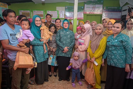 Dalam kunjungan tersebut, Indira bersama Ninuk memantau berbagai aktivitas pelayanan kesehatan ibu dan anak di Posyandu Teratai.